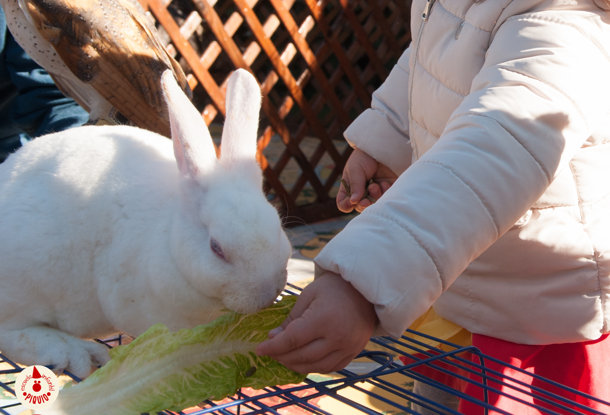 Es la hora de comer, con lo que las zanahorias y los cereales pasan a las manos de los niños. Hay niños más valientes y más recatados, pero al final todos dan de comer a las «fieras». Los animales más listos como los corderos o los conejos se llevan la comida de los más lentos. Al final, todos los niños disfrutan, ya tienen el entorno controlado, con lo que jugamos hasta que las fuerzas piden la comida. Dejamos paso a los mayores de Piquio.